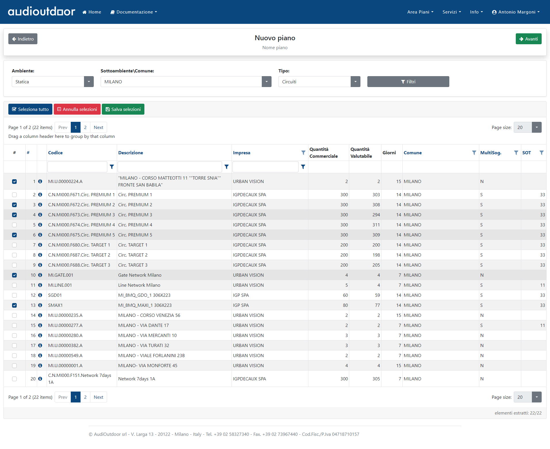 La possibilità di selezionare il target di riferimento della campagna, tra quelli disponibili nella ricerca AudiOutdoor, e di valutare l’affinità, la copertura e la frequenza degli impianti e dei circuiti scelti.